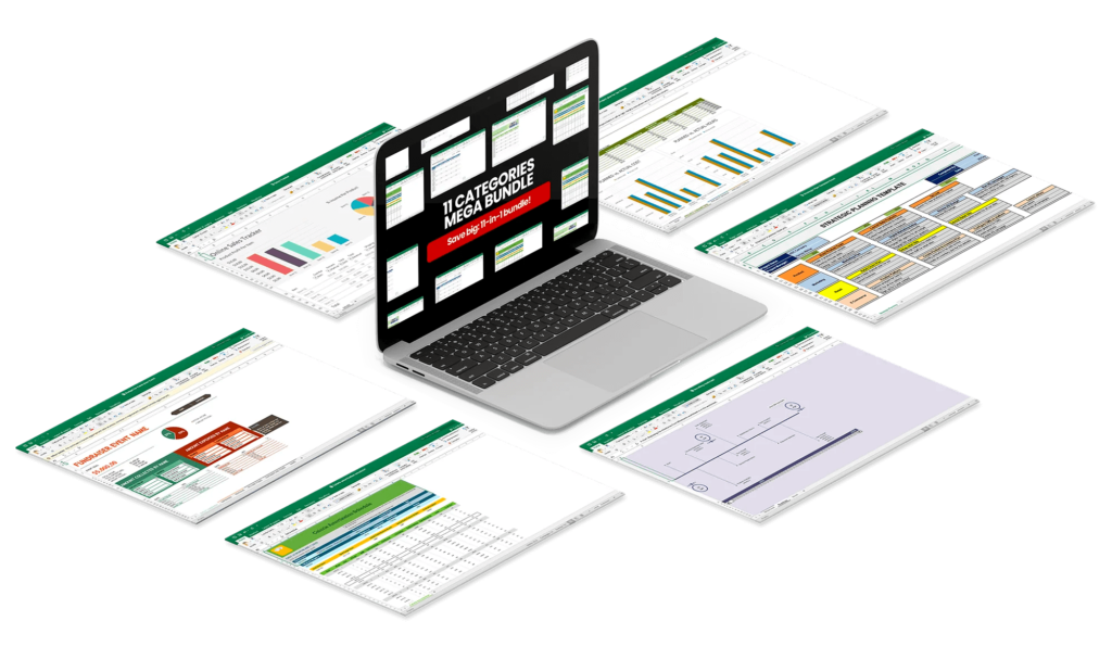 Our sole mission in creating this remarkable bundle is to assist you in professionally managing your data, swiftly and effortlessly. With a robust collection of templates spanning 11 different categories, we guarantee that your workdays will become exponentially easier.